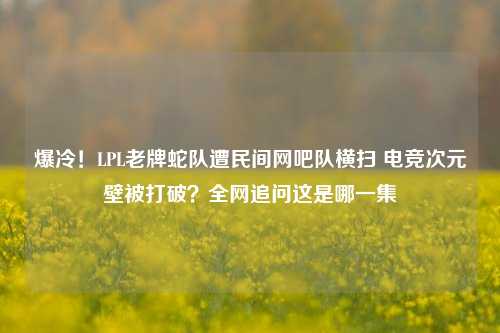 近日,LPL老牌战队蛇队被民间网吧队横扫的爆冷事件在电竞圈掀起热议,“电竞次元壁被打破”成为讨论焦点,这场对决彻底颠覆了大众对职业战队与民间队伍的实力认知,职业战队的意外落败让不少网友深感震惊,大量电竞爱好者纷纷追问这场冷门对决的具体场次,试图复盘这场打破次元壁的比赛,这一事件也引发了关于民间电竞潜力与职业战队状态的深度探讨。